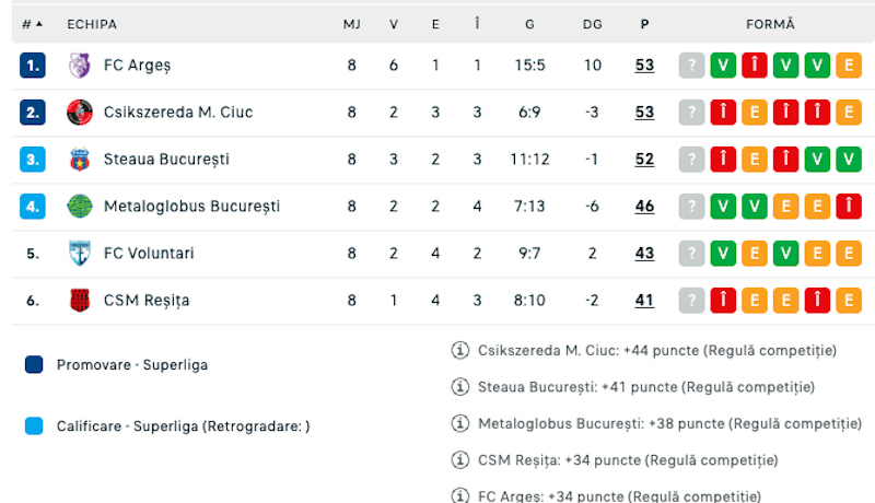 Liga 2, etapele 7 și 8 play off și etapa 6 play-out: rezultatele, marcatorii și clasamentele. FC Argeș a trecut pe primul loc și a promovat direct, alături de Csikszereda Miercurea Ciuc în SuperLiga.