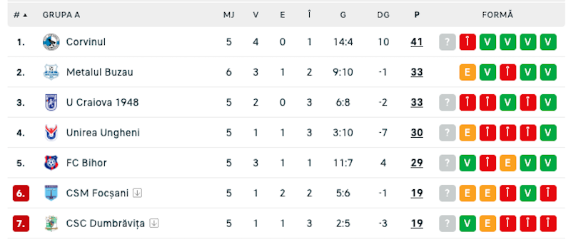 Clasament Grupa A